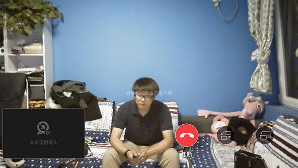 连接成功可进行视频通话 另一方面,乐视三合一体感摄像头也能进行视频通话功能,这时候就需要“HomeTime”这个应用了,正好赶上自己家有两台乐视超级电视就试验了一下,因为另一个电视并没有安装摄像头所以只能单方面的测试下,声音和画面的流程度都非常不错,不过画质比较一般,当然整个应用非常的简单,并没有太复杂的功能,拨打一个绑定设备的手机号就能完成连接也显得很方便,总体来说易用性不错。