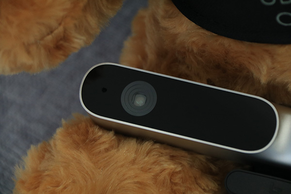 体积缩小不少 本文的主角就是一款体感产品,不过他不单单只有单一的功能,它能够支持3D体感识别、手势操作以及视频通话(拍照)功能,这也是其名字中“三合一”的由来。我们先来看看这款乐视三合一体感摄像头的外观,改摄像头表面采用压铸铝表面制成及阳极氧化银色喷砂,体积则比上一代产品缩小了50%,因为采用了银色的铝制外壳,所以无论是视觉质感还是真实触感都有了明显的提升,另外摄像头本身也很有份量感,不过对于这样一款配件而言这个显得并不是很重要。